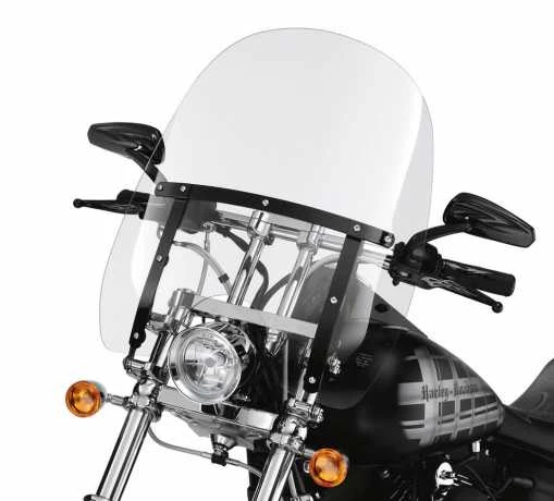 Kombinieren Sie die klassische Harley-Davidson Windschutzscheibe mit einem neuen, revolutionären Montagesystem und erzielen Sie ein Optimum an Styling und Funktionalität. Formschöne, gegossene Halterungen mit Schnellverschlüssen fixieren die Windschutzscheibe an den Gabelholmen, nach dem Abnehmen bleiben keine verunstaltenden Halterungsteile übrig.