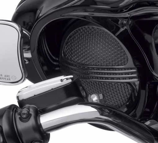 Schlägt einen neuen Ton an. Defiance Lautsprechergitter schmiegen sich an originale oder Boom! Audio Stage I Lautsprecher. Die mit einem Wabenraster und dünnen horizontalen Leisten versehenen Defiance Lautsprechergitter schützen die Lautsprechermembran und sorgen für einen Hauch Luxus am Soundsystem des Bikes.