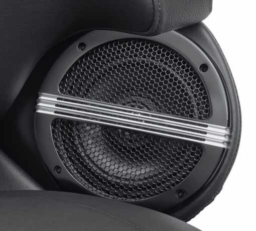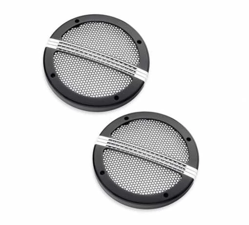 Schlägt einen neuen Ton an. Defiance Lautsprechergitter schmiegen sich an originale oder Boom! Audio Stage I Lautsprecher. Die mit einem Wabenraster und dünnen horizontalen Leisten versehenen Defiance Lautsprechergitter schützen die Lautsprechermembran und sorgen für einen Hauch Luxus am Soundsystem des Bikes.