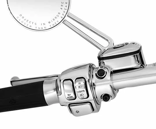 Die verchromten Schalterkappen ergänzen andere Chromteile für den Lenker (wie Chrom-Hauptbremszylinder, Chrom-Lenkerausstattung, Chrom-Schaltergehäuse und Chrom-Hauptbremszylinderabdeckung) und vervollständigen so den Custom-Look.