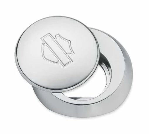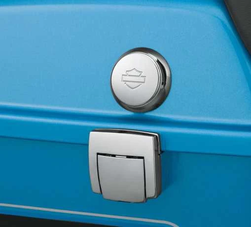 Diese elegante druckgegossene Abdeckung mit Bar & Shield Logo verleiht Ihrem Tour-Pak Verschluss einen Custom-Look.