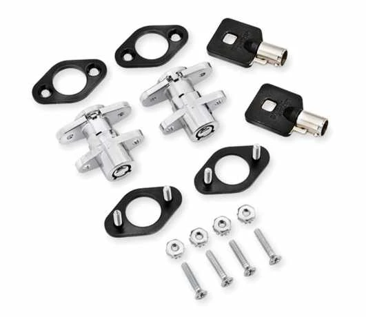 - Dieses Kit enthält zwei besonders kleine Zylinderschlösser, die die Schnappverschlüsse vorhandener Satteltaschen ersetzen können und sowohl als Schlösser wie auch als Schnappverschlüsse in jenen Situationen genutzt werden können, in denen ein Verschließen der Taschen nicht erforderlich ist