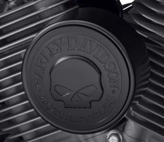 - Der imponierende, plastische Schädel und der Schriftzug Harley-Davidson® Motorcycles verleihen dem klaren, nachtschwarzen Look genau den richtigen Charakter.